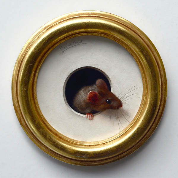 Marina Dieul is known for her animals and figures paintings in trompe-l'oeil style, full of humor and poetry. She lives surrounded by the many cats she fosters for a no-kill shelter in Montreal.