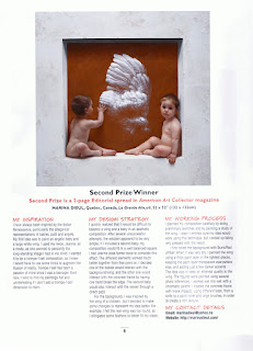 Je suis heureuse d'annoncer que ma peinture "La grande aile" a gagné la deuxième place dans le concours de International Artist Magazine ( #90 Avril/Mai 2013)